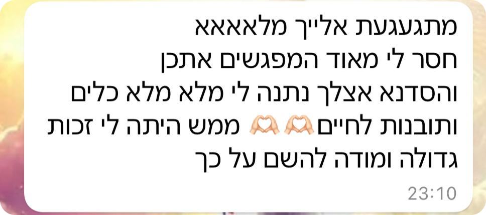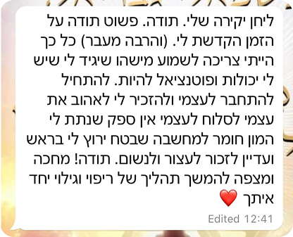 המסע הזה עמוק, עדין ופרקטי – והוא מחכה לך בדיוק ברגע שבו תסכימי להרגיש. מהמקום הזה – קורה שינוי.