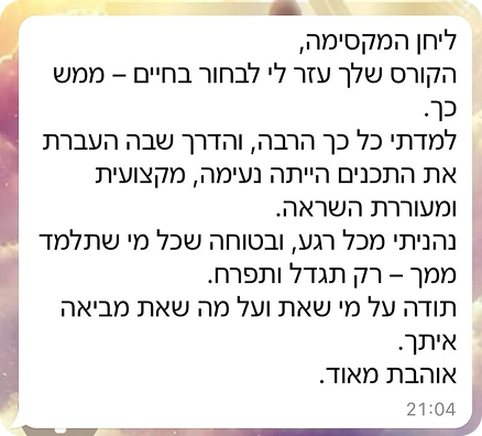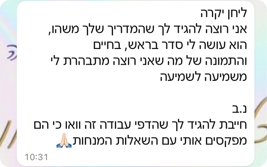 אם יש לך עוד שאלות ואת רוצה לדעת שהמסע הזה באמת מדויק לך עכשיו